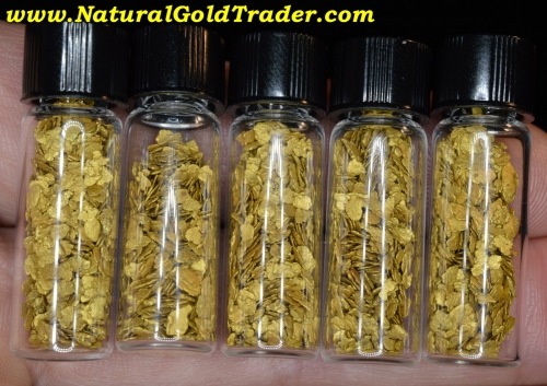 Awesome little glass vials filled with 100% natural placer gold flakes directly from our most Northern gold-rich State!