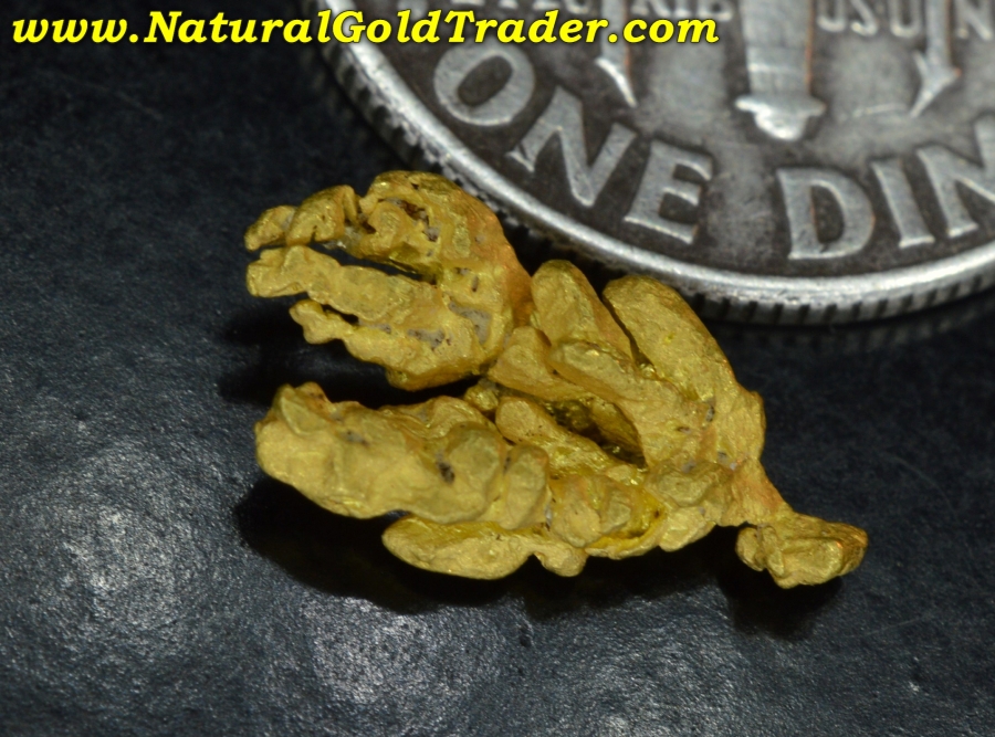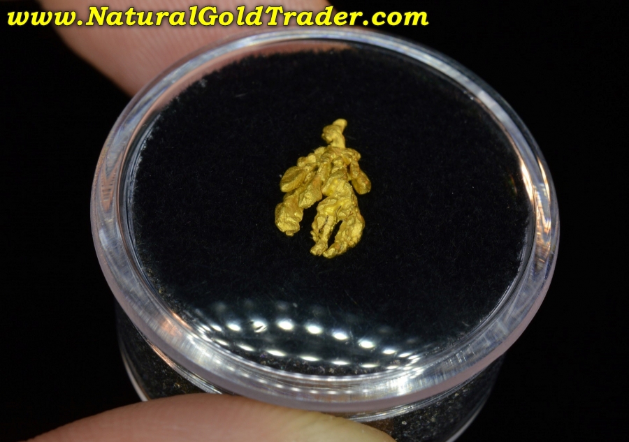 This exceptional, 100% natural crystallized gold specimen was recently found in Montana. It weighs 0.70 grams and has wonderful shape, color & awesome crystallized character. Natural gold specimens like this one offer a terrific alternative way to investing in the precious metal gold. It will be an outstanding addition to someone's natural high-grade gold specimen collection!