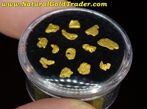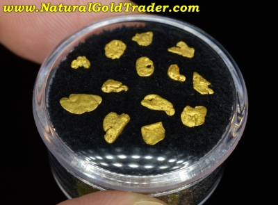 These 13 Placer County California natural gold nuggets will be shipped in the display jar photographed.