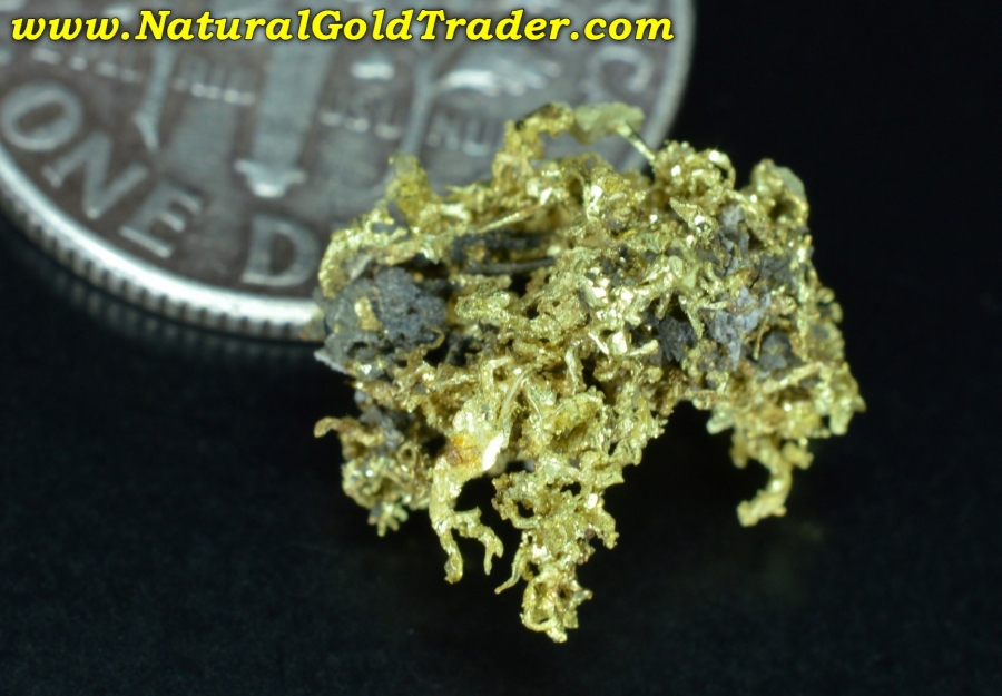 This fantastic gold specimen was recently found with the help of a metal detector in Boise County. It weighs 0.95 grams and has outstanding color & formations of crystallized wire gold. Natural gold specimens like this are quite rare and highly collectible. It will be a wonderful addition to someone's natural high-grade gold specimen collection!