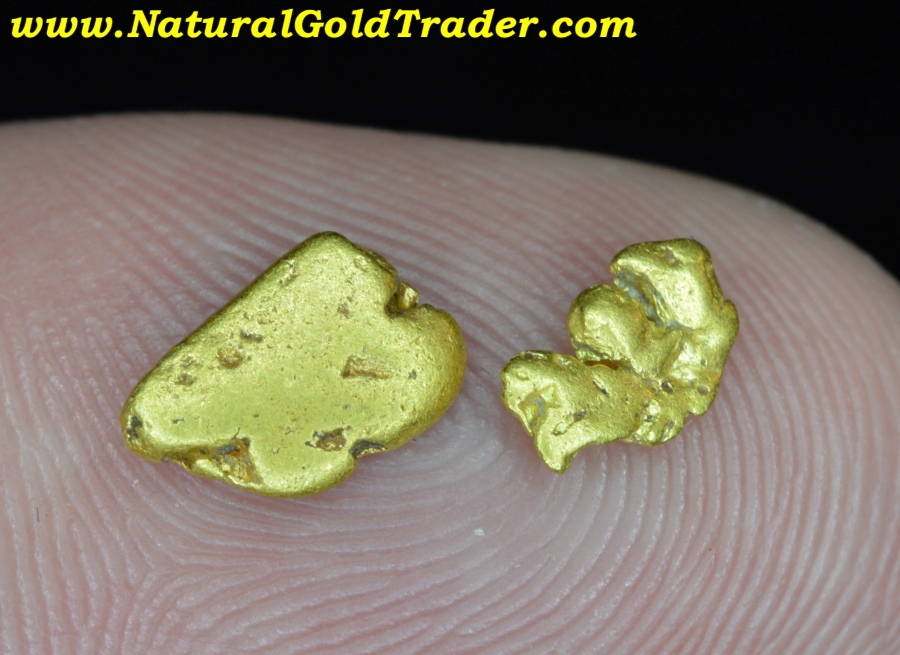 These pure & pretty gold nuggets were recently found by a local electronical prospector armed with his metal detector in Mexico. They have a combined net weight of 0.96 grams and have outstanding color & character. They will be a fantastic addition to someone's natural gold nugget collection!