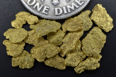 Here is a nice little pile of Montana placer gold pickers. These would be just right for jewelry inlay. They have a combined weight of 1.63 grams, and are very pretty.