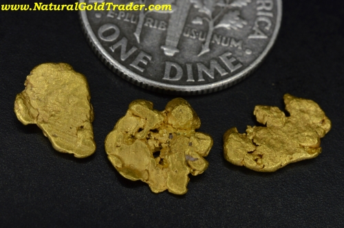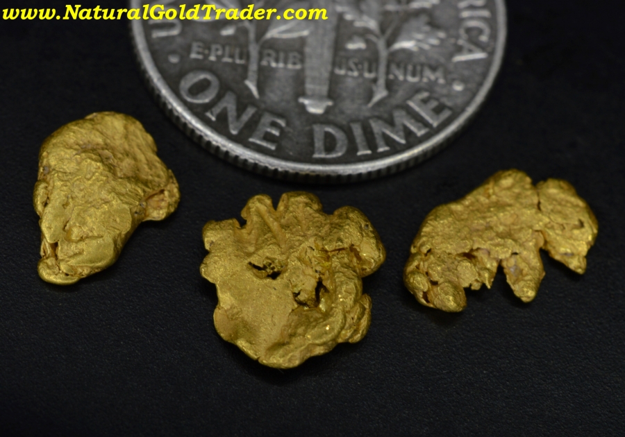 3 Full of character, 100% natural placer gold nuggets directly from Northern California!