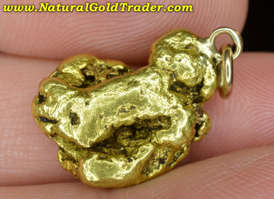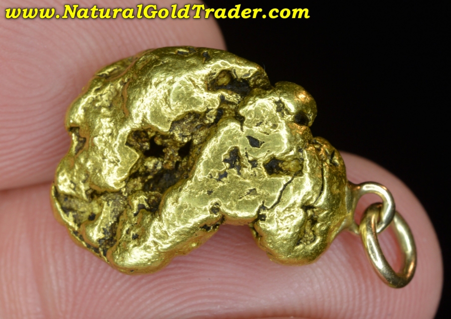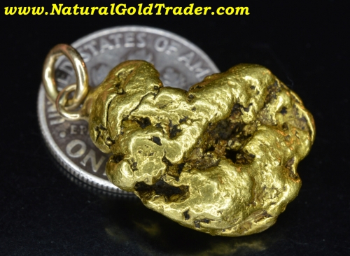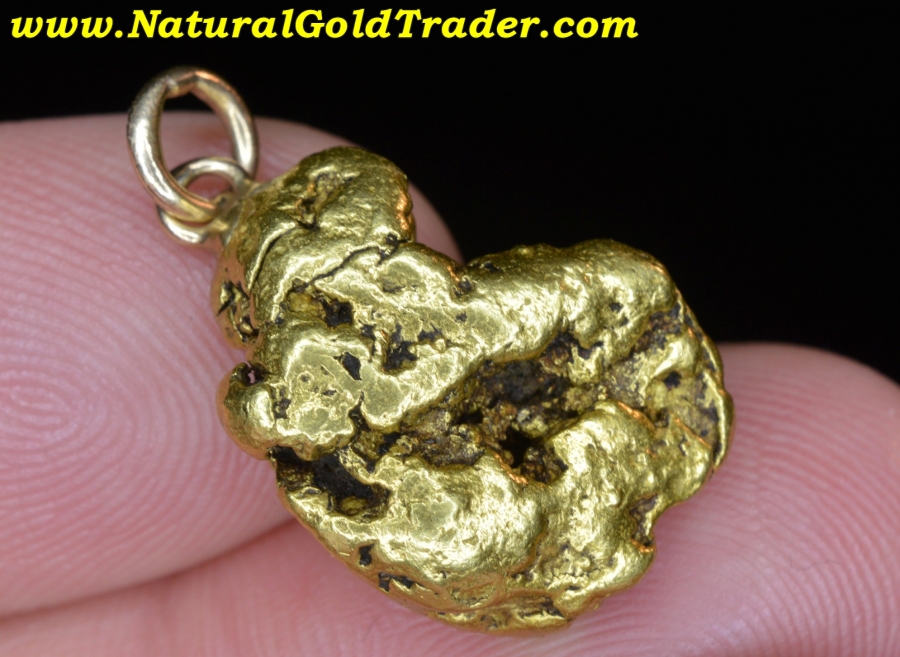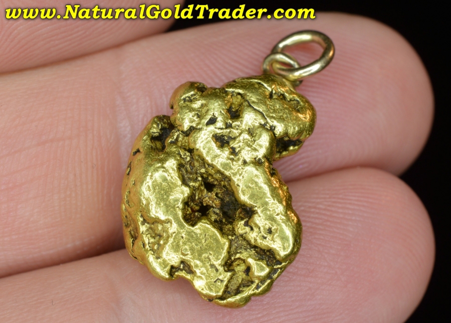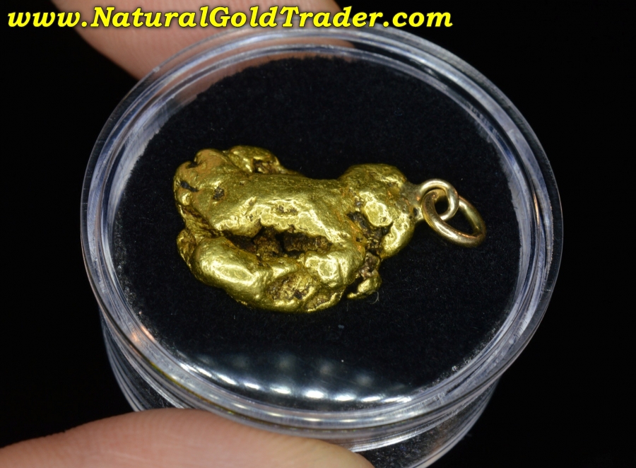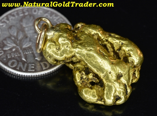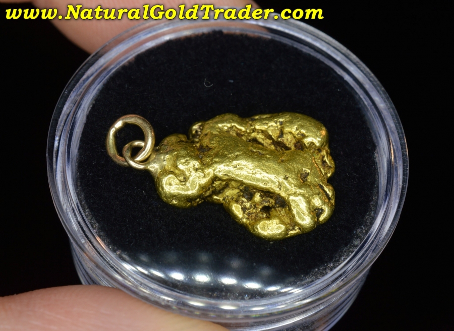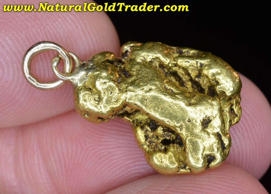 This very impressive gold nugget was found in our most Northern gold-rich State, and has been made into a pendant. It weighs in at 10.98 grams and has wonderful shape, color & character. Natural gold nuggets like this beauty offer a fantastic alternative way to invest in the precious metal, and this one can be worn. It's ready for a chain and will look amazing dangling from someone neck!