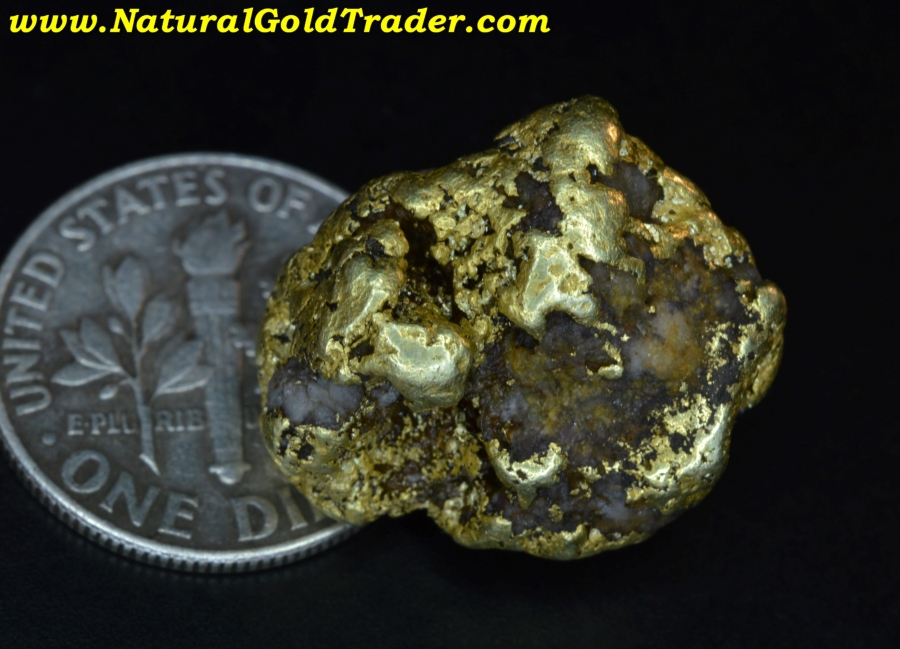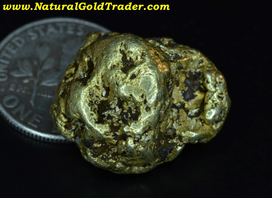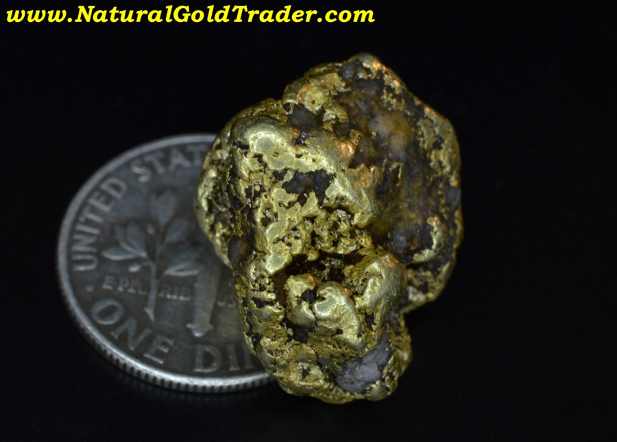 This awesome gold nugget was found in McDowell County at the Lucky Strike Gold Mine. It weighs 12.20 grams with trace amounts of quartz host rock contained, but most of the weight of this nugget is gold. Nuggets from North Carolina are pretty rare and one this size is extremely rare. It has great color and character and will be a wonderful addition to someone's natural gold nugget collection!