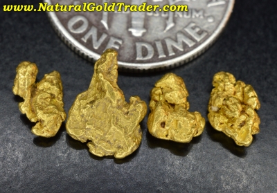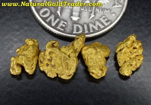 Four extremely pure & pretty, coarse & chunky gold nuggets directly from the gold-rich deserts of the South-Western United States!