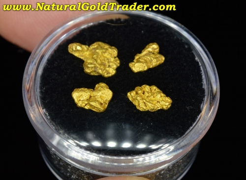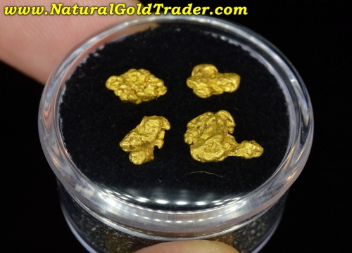 These 4 Arizona natural gold nuggets will be shipped in the display jar photographed.