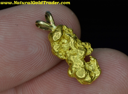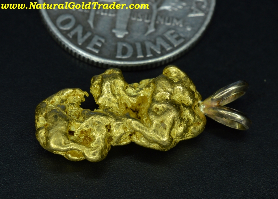 This stunning gold nugget was recently found with a metal detector near Kalgoorlie. It weighs 2.98 grams and just had a solid gold bail soldered to it. This pendant has awesome color and character. It has never been worn, is ready for a chain, and will look great dangling around someone's neck!