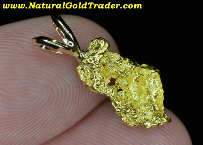 A Wonderful placer gold nugget that has had a solid gold butterfly bail soldered to the top of it directly from Alaska!