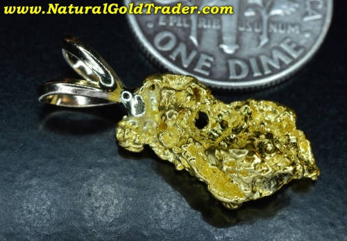 This beautiful, 100% natural gold nugget was mined in Alaska and has been made into a gold nugget pendant. It weighs 3.00 grams and has outstanding shape, color & character. Natural gold nuggets offer a terrific way to protect, preserve & diversify wealth, and this one can be worn. It's ready for a chain and will look amazing dangling from someone's neck!