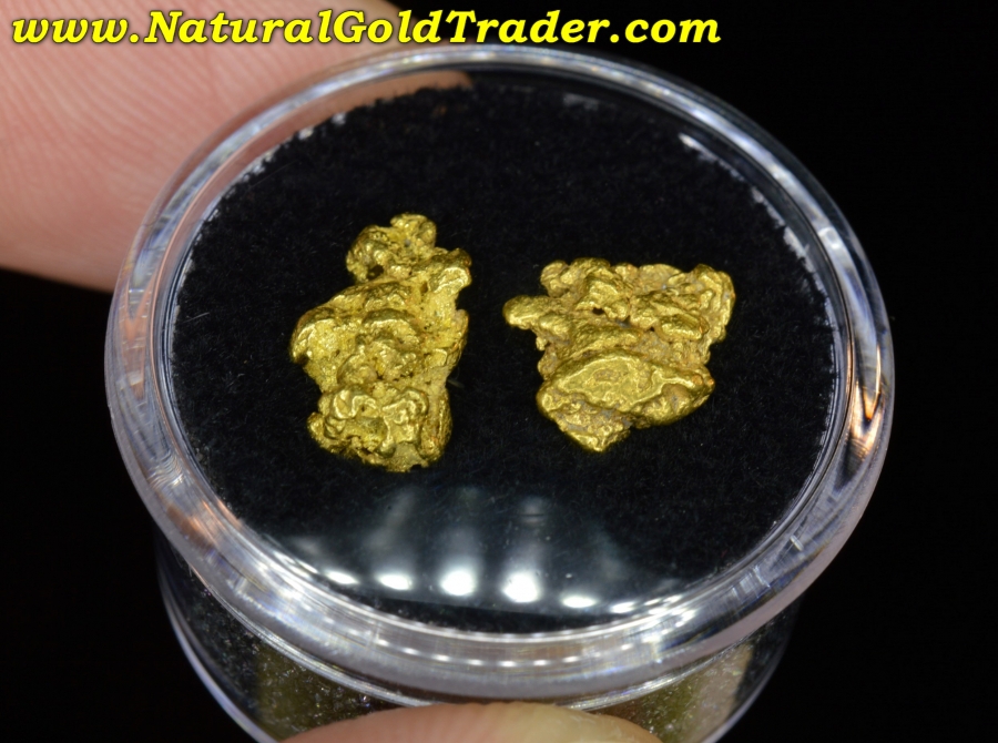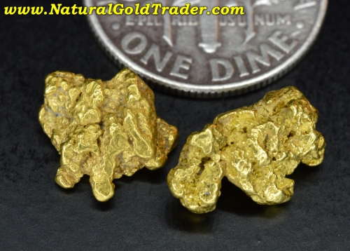 These excellent, 100% natural gold nuggets recently found themselves trapped in the sluice box riffles of a placer gold mining operation in Alaska. They have a combined net weight of 3.03 grans and have outstanding color & character. Natural gold nuggets like these offer a fantastic way to protect & preserve wealth. They will make a great addition to someone's natural gold nugget collection!