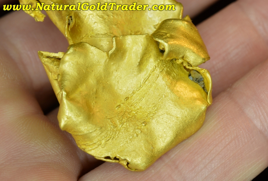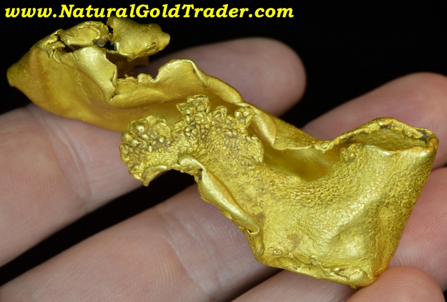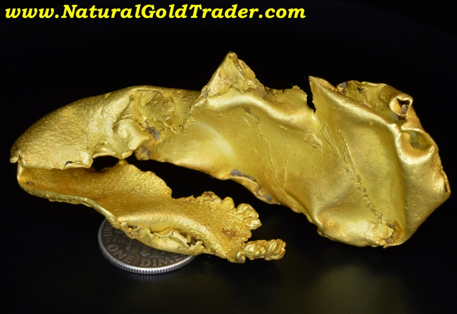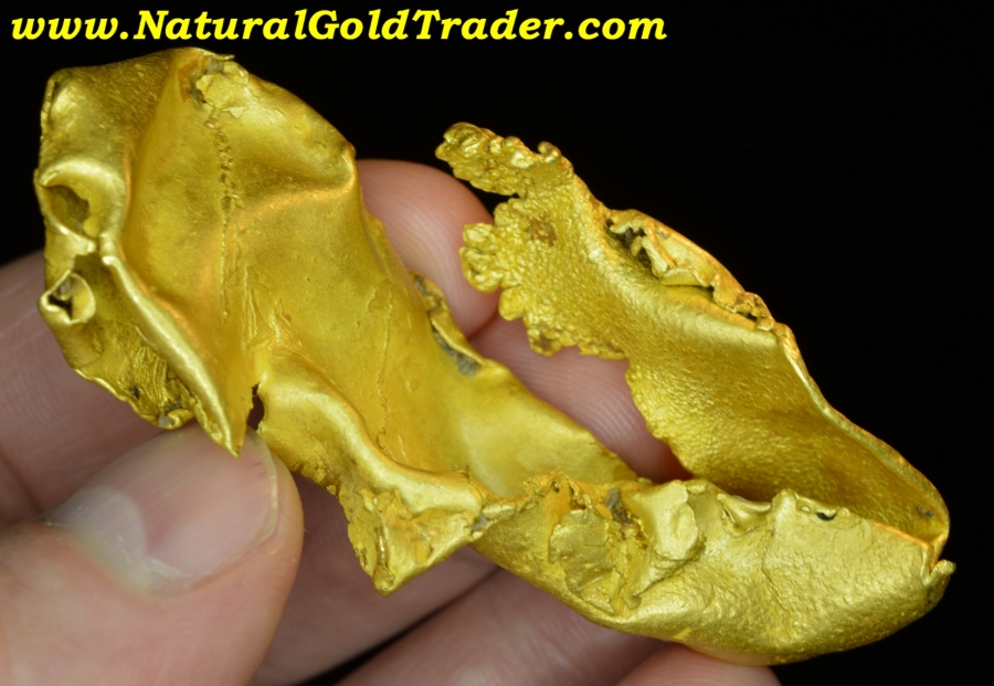 This gorgeous, 100% natural gold specimen was recently found with the help of a metal detector in the Black Rock Desert and is actually huge for it's weight of 37.4 grams. It has an amazing deep yellow color and crazy one of a kind character, with a combination of foil & crystallized formations. It was unearthed at a depth of about 2 feet and was found with a Minelab GPZ-7000.