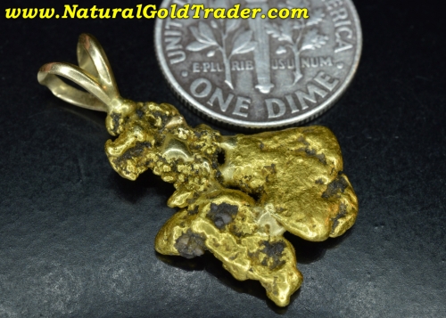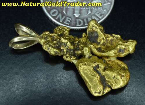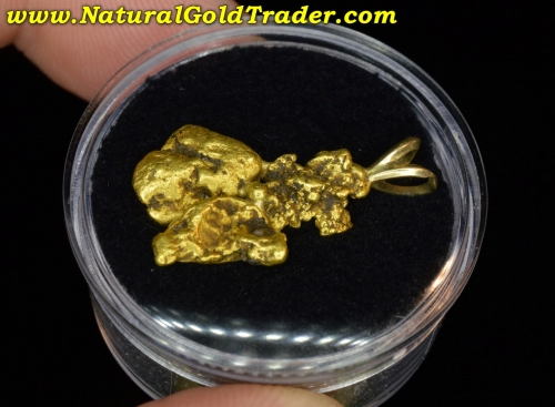 These gold nuggets were found in a placer gold mining operation and have had a solid gold bail attached to them. The pendant weighs in at 5.38 grams and is very unique, having wonderful shape, color & character. Natural gold nuggets offer a fantastic way to protect & preserve wealth, and these can be worn.