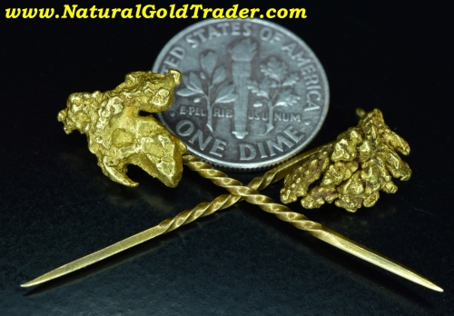 Two very pretty, unique & antique natural gold nuggets that have been made into stick-pins from Alaska!