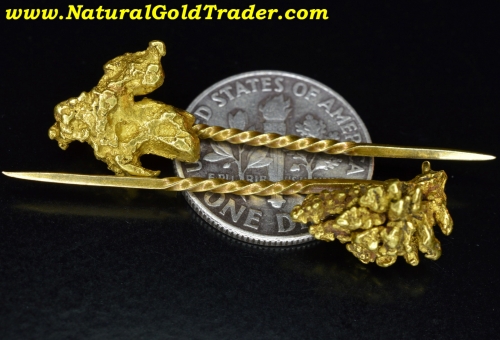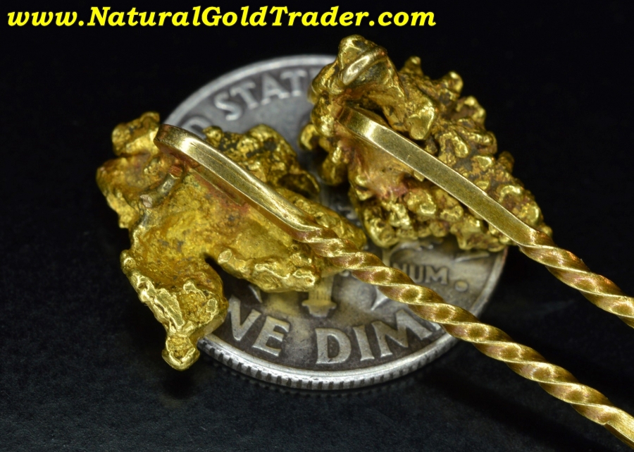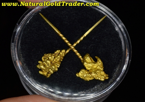 5.52 Gm. (2) Natural AK. Gold Nugget Stick-Pins
