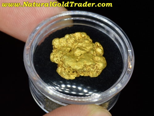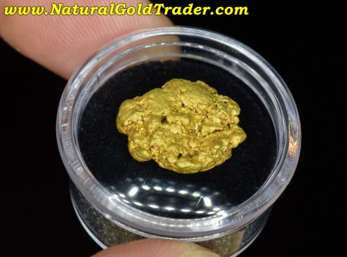 This Fortymile River Alaskan natural gold nugget will be shipped in the display jar photographed.